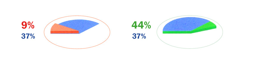 Person 1, männlich, Jahrgang 1961. Health-Messung, Ausgangsbasis mit 9% zeigt massive Mangelerscheinungen und hohes Stressniveau. 30 Minuten nach der Aktivierung mit dem photovoltaic Converter ist das Niveau bereits über Normal-Level.
